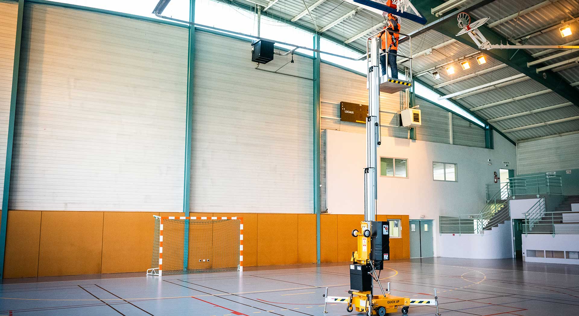 The Quick Up range of Push-arounds is adapted for all indoors projects. Light, they work on the most fragile grounds. They are easily transportable manually or can be towed by a trailer or a van. Their non-marking tires and stabilizers with rubber protect the floor surface. With their compact size they can go through doors or fit in lifts. The quick set up can be achieved by one person. Requiring minimal maintenance, they are a good value for money. Push-Arounds range from 8 to 14 meters in height.